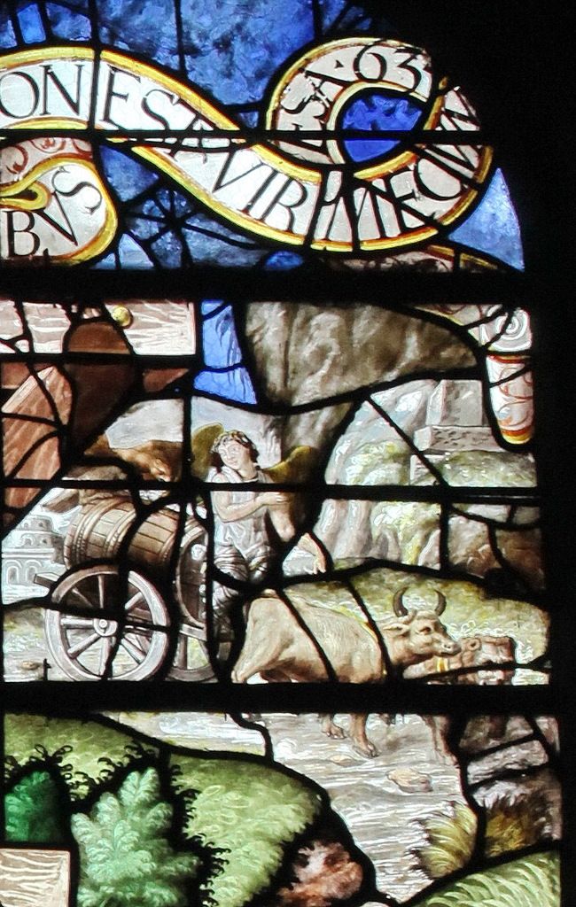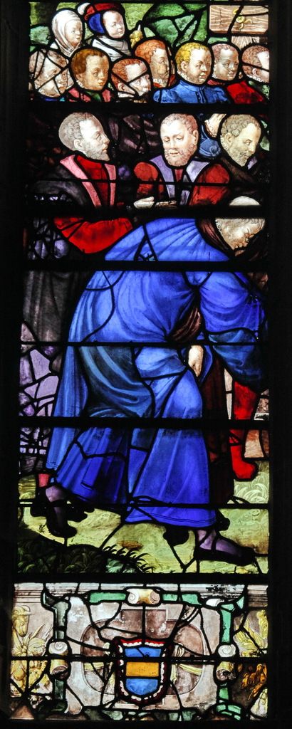 Jean le Tellier, donateur, vitrail du Pressoir Mystique, baie n°14 de l'église Sainte-Foy de Conches-en-Ouche, photographie lavieb-aile.