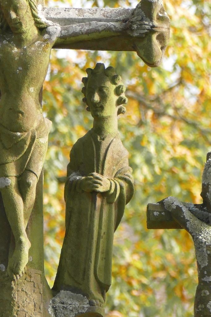 Crucifixion (détail), Bannière n° 2 (1700-1725) de l'église Sainte-Nonne de Dirinon. Photographie lavieb-aile 2016.