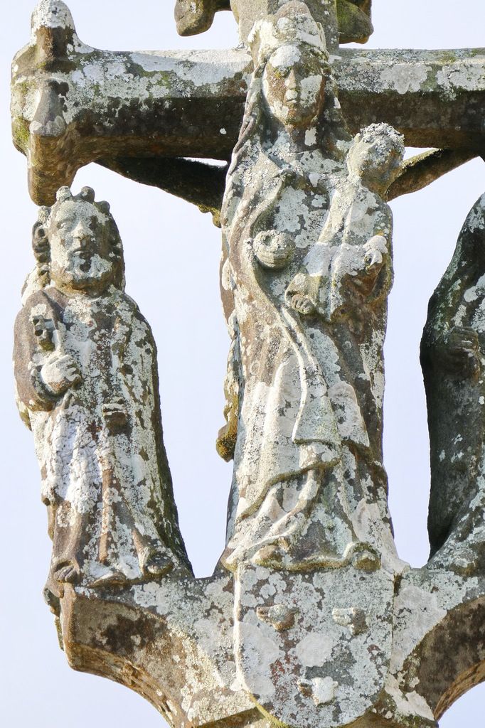 J'ajouterai que les auteurs de la monographie de l'APEVE signalent la particularité de la Vierge à l'Enfant : "l'enfant semble sortir d'une poche". or, cette particularité, qualifiée de "Vierge kangourou" est aussi propre à Jean Berthoulous et on la retrouve à Plougastel, Sizun, Plougasnou. Ce sont donc les trois statues de la Vierge, de saint Dominique et de sainte Catherine qui proviennent d'un retable antérieur du au ciseau de Berthoulous.