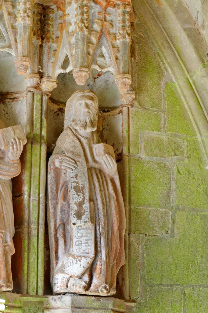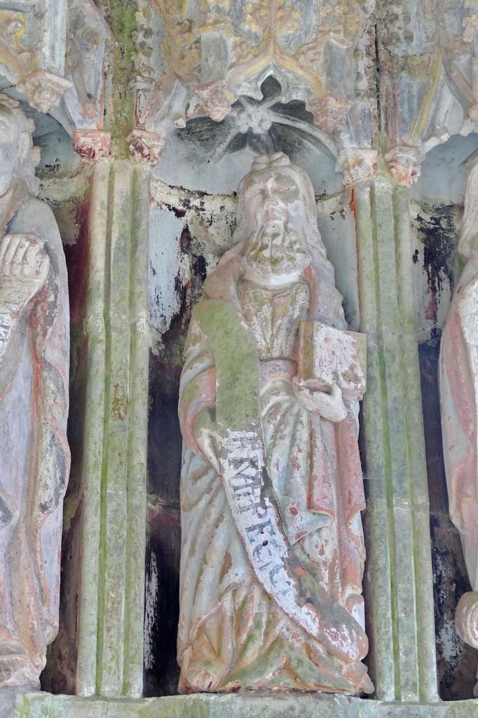 Les statues des douze apôtres, d'un mètre de haut, sont contenues dans des niches à coquilles sous des dais gothiques au pinacle élevé pour huit d'entre eux. En 1793, trois apôtres furent décapités et la série fut déplacée.